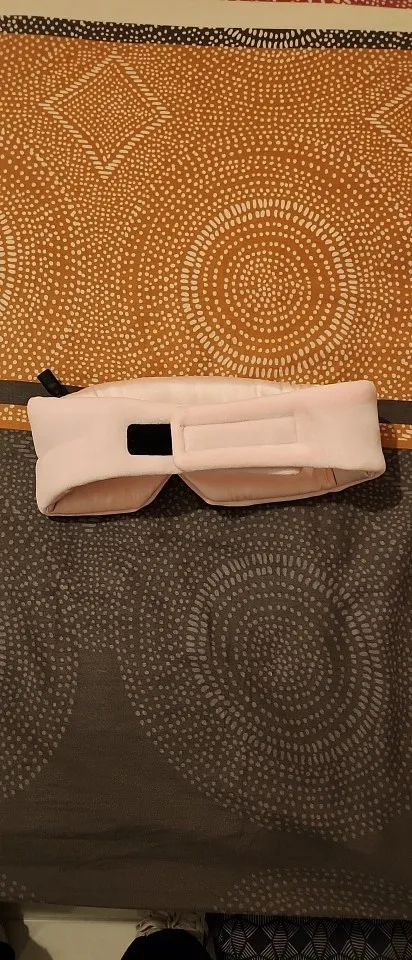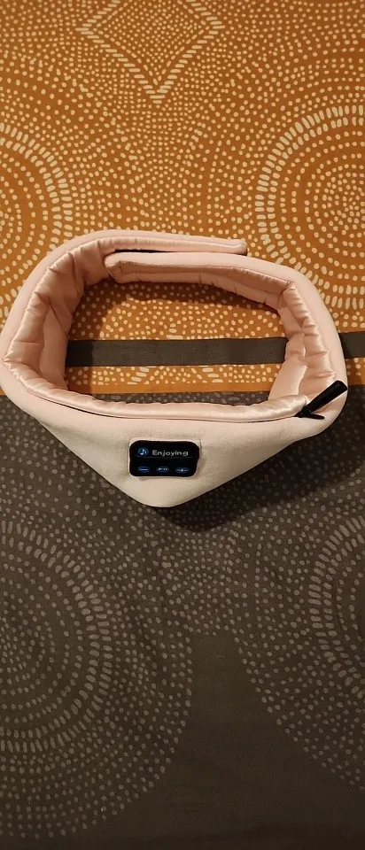 I love it, it has been very useful for me, the fabric inside is satin type, so it is very soft, and the fabric outside is velvet, the color is the same as in the photos, it adjusts with a velcro, it has a very hidden zipper with a pocket where you can take everything out to wash it, the sound is very good, I mainly use it for white noise, and it sounds very good, although I have also used it for a few calls and the microphone works perfectly, they always hear me very well, it doesn't bother me when sleeping on the side or anything, definitely a very good purchase, worth it compared to others that cannot be washed.