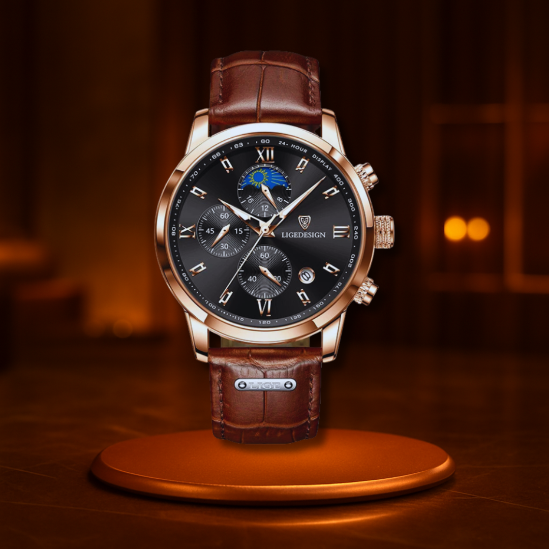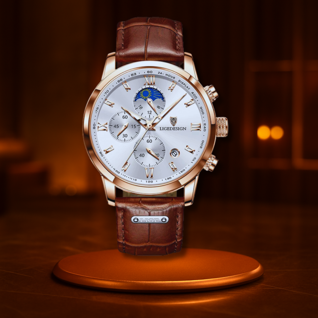 Looking for the perfect gift that says “stylish, smart, and a little bit daring”? This multifunction waterproof men’s watch is the ultimate present to impress. With its sleek stainless-steel case, comfy leather band, and luminous hands that glow in the dark, it’s ready for everyday adventures—and special nights out. The chronograph, stopwatch, and moon phase dials add a playful twist that makes timekeeping fun. Splash-proof, shock-resistant, and built with reliable quartz movement, it’s not just a watch, it’s a lasting reminder of your thoughtfulness. Wrap it up and watch his face light up—every tick a little “I care.”
