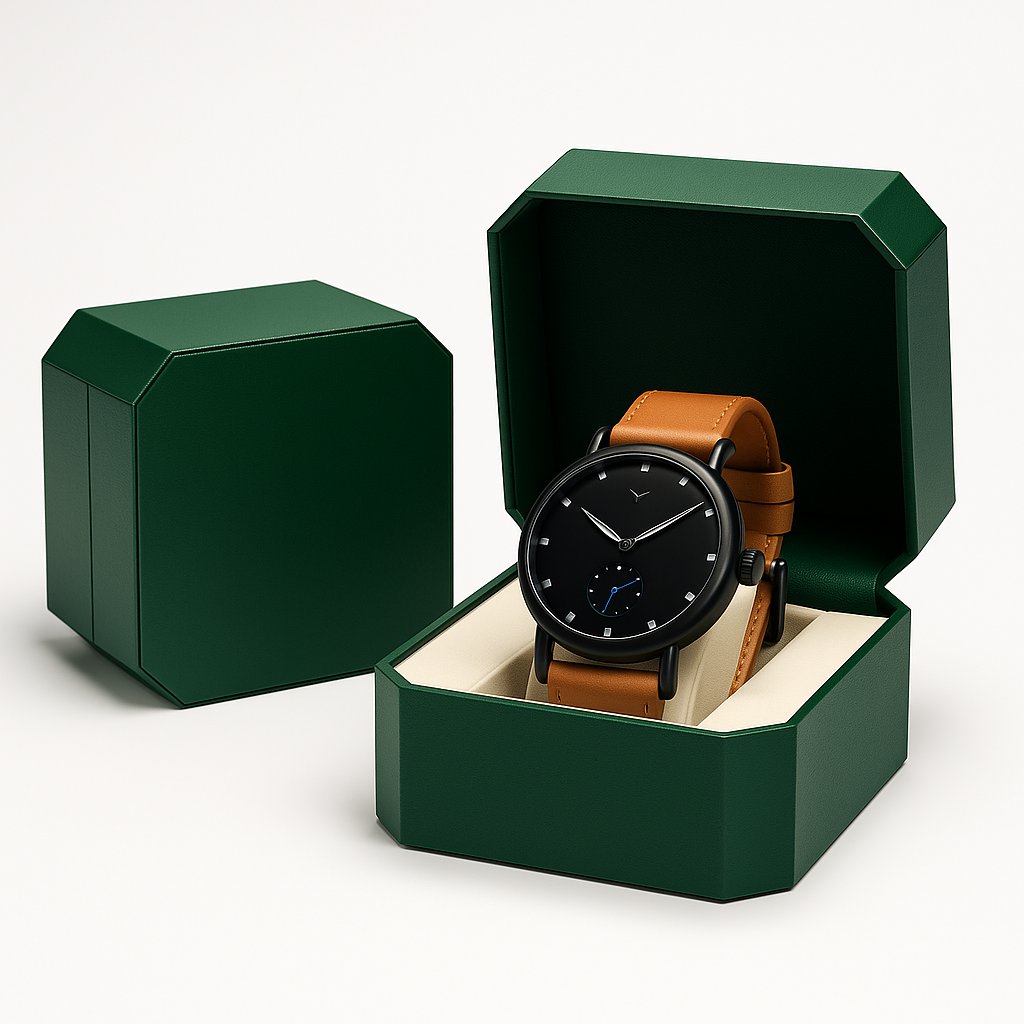 Luxury Presentation Box – Because First Impressions Matter: Every masterpiece deserves an equally refined presentation — and our Premium Watch Gift Box is designed to do just that. Crafted with precision and sophistication, this elegant emerald-green octagonal box transforms the unboxing experience into a moment of pure luxury.