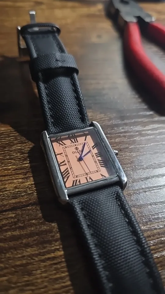 Nice, comfortable, well-matched colors that offer an antique watch look, the case and lid seem to be alloy since no stainless steel is indicated. The strap doesn't look bad even though it's of low quality; for less than €7 you can't ask for more. I recommend it and even have it in several colors 👍🏼